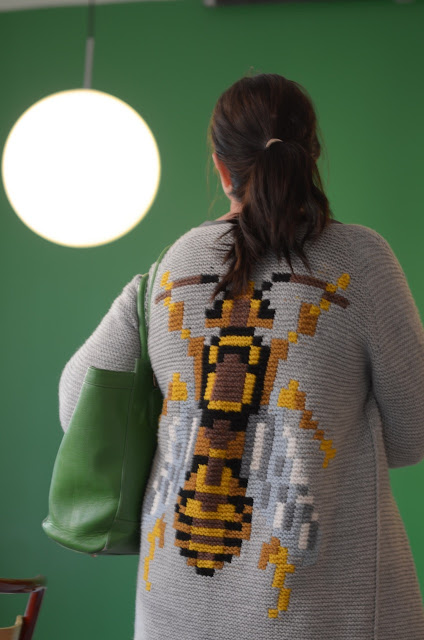 | Ikkje berre vottar: Merete tar med seg "Vespejakka" si til Strikkefestivalen på Lurøy. (Foto: Ann Myhre) |