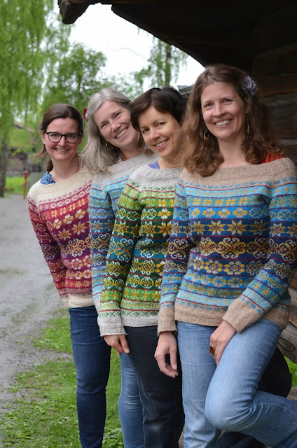 | Fire av åtte i Vottelauget, alle i sjølvstrikka utgåve av genseren "Next year in Lerwick", designa av Tori Seierstad. Frå venstre: Ann, Wenche, Anne og Tori. (Foto: Hedvig Løken) |